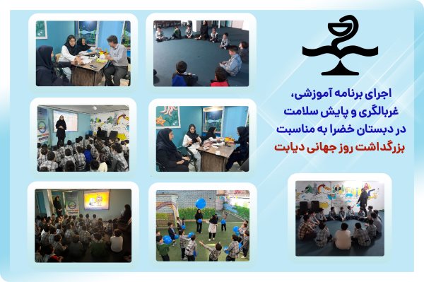 بنیاد دیابت در روز چهارشنبه ۷ آبان ماه ۱۴۰۴ به مناسبت نزدیک شدن به روز جهانی دیابت دو برنامه آموزشی برای مقاطع دوره اول ابتدایی و دوره دوم ابتدایی در دبستان پسرانه خضرا در دو نوبت مجزا اجرا نمود، در این برنامه حدود ۱۸۰ نفر دانشآموز با دیابت، سبک زندگی سالم و پیشگیری از دیابت آشنا شدند. همزمان گروه غربالگری و پزشک تیم بنیاد دیابت به معلمین و کادر مدرسه مشاوره سلامت دادند. در پایان برنامه های آموزشی، حلقه آبی توسط دانش آموزان تشکیل شد.